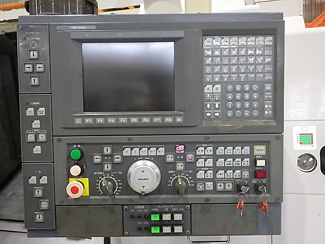 | 仕様 | OSP-E100L 8吋3爪中空チャック(北川/B-208) 12角複合タレットY軸付 センター付 ツールプリセッター付 右出しチップコンベア |